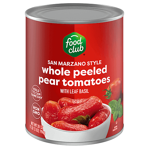 Food Club San Marzano Style Whole Peeled Pear Tomatoes With Leaf Basil 28 oz