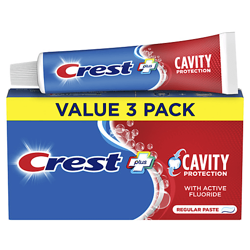Crest Plus Cavity Protection Toothpaste gives you a cavity treatment that helps take care of your mouth by protecting your teeth and exposed roots. Regular brushing can help protect your teeth and strengthen weak spots to help fight cavities. Plus, it'll leave your breath feeling fresh.